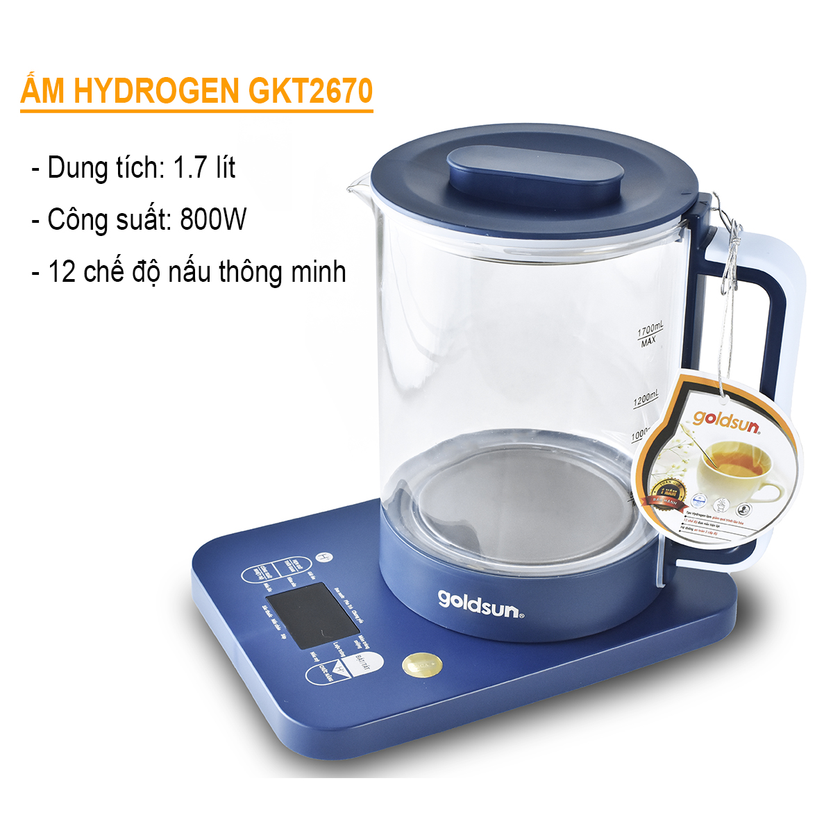 Ấm Hydrogen Goldsun GKT2670 sử dụng công nghệ hiện đại lần đầu tiên xuất hiện tại Việt Nam để tạo ra nước có chứa Hydrogen vô cùng tốt cho sức khỏe. Có thể nói sản phẩm là sự kết hợp của nhiều loại sản phẩm khác nhau: máy lọc nước, ấm đun nước, nồi lẩu, ấm sắc thuốc, ấm chưng yến, các loại nồi thông dụng khác. Chắc chắn đây sẽ là 1 sản phẩm HOT nhất thị trường trong thời gian tới.