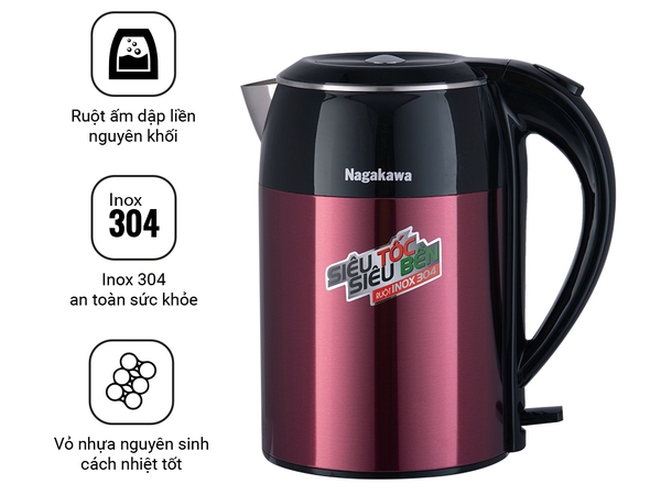 Ưu điểm nổi bật của ấm siêu tốc 1,8 lít Nagakawa NAG0315