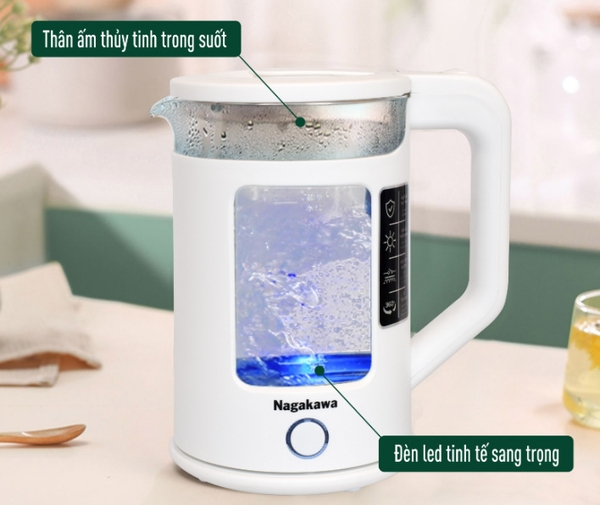Giới thiệu ấm siêu tốc thủy tinh Nagakawa NAG0318 (1.7L - 1355W)