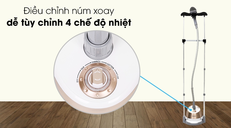 Bảng điều khiển bàn là hơi nước đứng dạng núm vặn dễ dàng tùy chỉnh 4 chế độ nhiệt, phù hợp với từng chất liệu vải![]()
