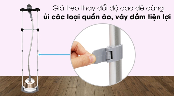 Giá treo thay đổi chiều cao linh hoạt cho việc ủi đồ ngay trên móc dễ dàng hơn