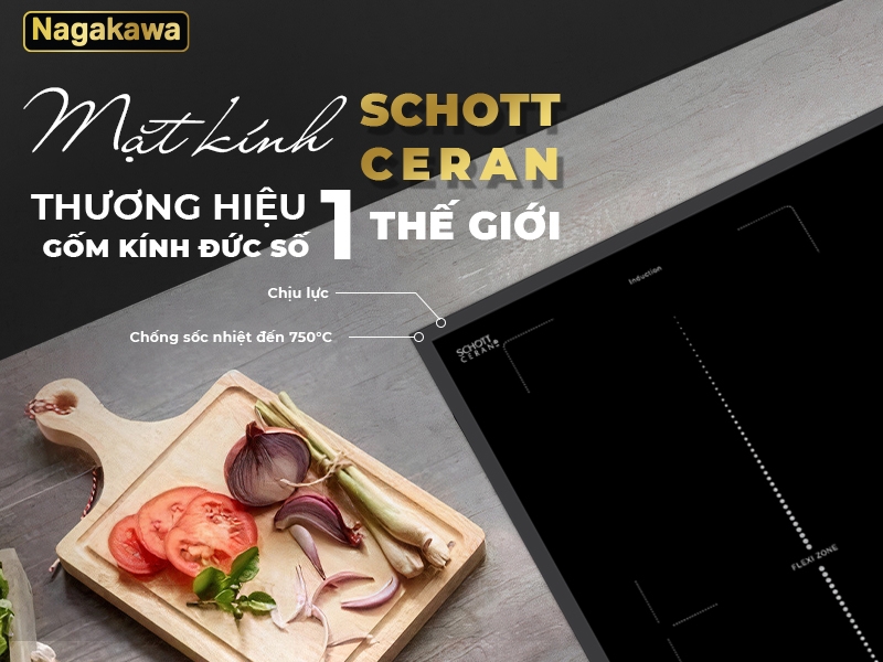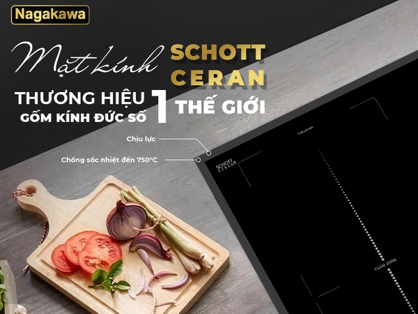 Mặt bếp điện từ thông minh Nagakawa NK3C05MSF làm từ kính Schott Ceran - thương hiệu gốm kính Đức số 1 thế giới - được làm từ gốm sứ thủy tinh đặc biệt có khả năng chịu lực, chịu nhiệt và khả năng va đập tốt, chống lại những cú sốc nhiệt đột ngột lên đến 750°C.