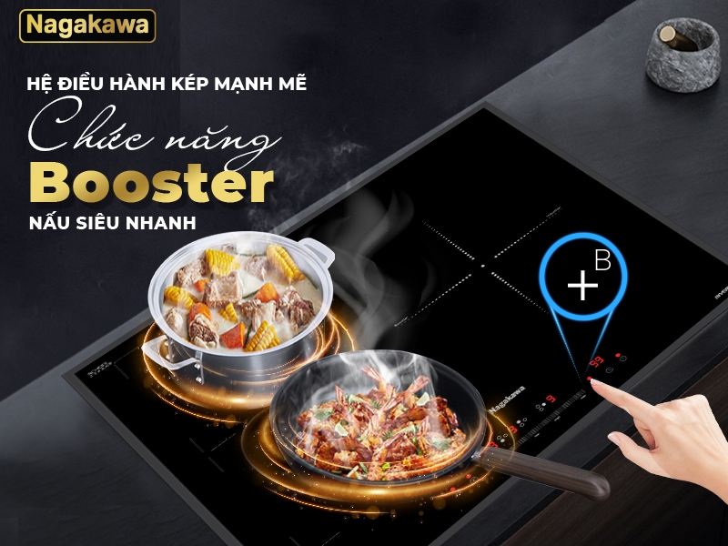 Bếp điện từ thông minh Nagakawa NK3C05MSF với chức năng Booster giúp bạn lựa chọn mức công suất cao nhất khi muốn nấu các món đặc trưng cần gia nhiệt nhanh, giúp lưu giữ đúng hương vị món ăn mong muốn.