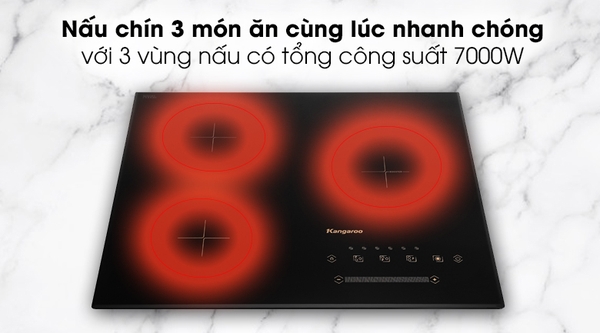 3 vùng nấu hoạt động với tổng công suất 7000W mạnh mẽ