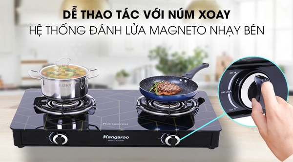 Bật tắt bếp gas và điều chỉnh ngọn lửa nhẹ nhàng với hệ thống đánh lửa magneto núm vặn đơn giản dễ dùng, bền bỉ![]()