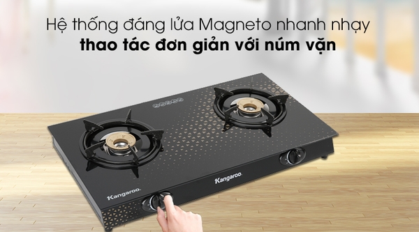 Bếp ga Kangaroo sở hữu tông màu đen sang trọng, tạo điểm nhấn cho gian bếp