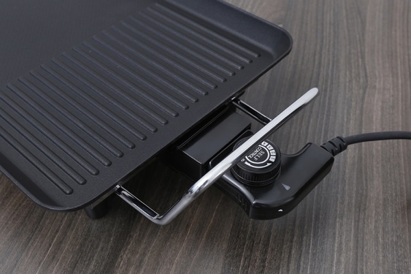 4 chân đế thiết kế cứng cáp, vững chắc, giữ cho bếp đứng ổn định trên mọi mặt phẳng. 2 bên hông bếp nướng điện có trang bị tay cầm cho phép bạn di chuyển bếp đến mọi địa điểm thuận tiện.