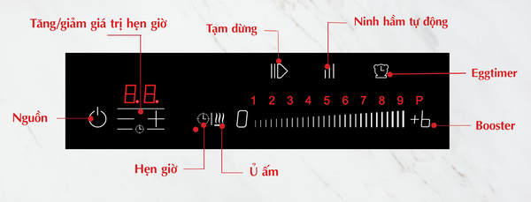 Ninh hầm tự động: Khi kích hoạt tính năng này, bếp sẽ được đẩy lên nấu ở mức công suất cao nhất (mức 9) trong khoảng thời gian từ 1-7 phút, sau đó sẽ tự động chuyển về mức công suất nấu thấp được lựa chọn ban đầu. Tính năng này được sử dụng tiện lợi khi cần nấu các món ninh hầm thời gian lâu.