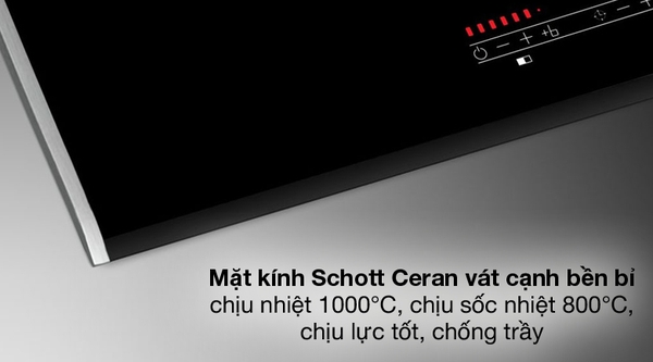Mặt kính Schott Ceran (nhập khẩu nguyên tấm từ Đức) chịu nhiệt tối đa 1000°C, chịu sốc nhiệt 800°C