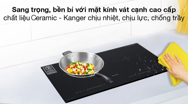 Bếp từ đôi lắp đặt âm sang trọng với mặt kính Ceramic - Kanger vát cạnh cao cấp, chịu nhiệt, chịu lực, chống trầy, bền bỉ.
