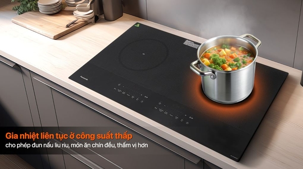 Bếp từ đôi có thể duy trì gia nhiệt ổn định ngay cả ở mức công suất thấp nhất. Nhờ đó, người dùng dễ dàng nấu liu riu, kho, hầm hoặc giữ ấm món ăn mà không lo bị ngắt quãng nhiệt.