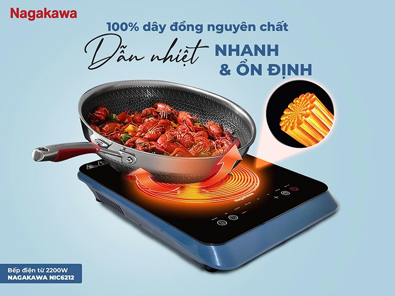 Bếp từ đơn Nagakawa NIC6212 mâm từ bằng đồng