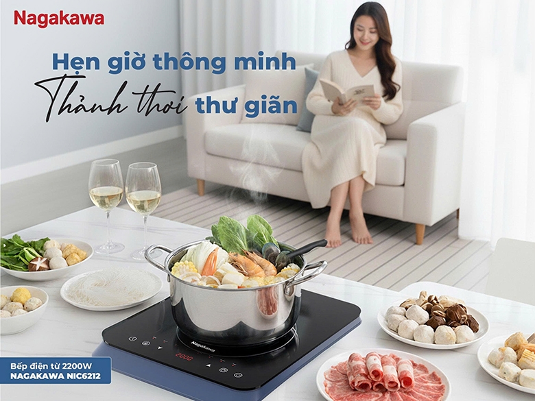 Bếp điện từ 2200W Nagakawa NIC6212 là giải pháp cho bữa ăn nhanh gọn, tiện lợi, an toàn, không khói, giúp tiết kiệm thời gian để bạn thảnh thơi thư giãn và chăm sóc cho gia đình. Bên cạnh đó, sản phẩm được các gia đình yêu thích vì thiết kế hiện đại, kích thước nhỏ gọn, di chuyển linh hoạt, đồng thời tích hợp đa dạng công năng. ![]()