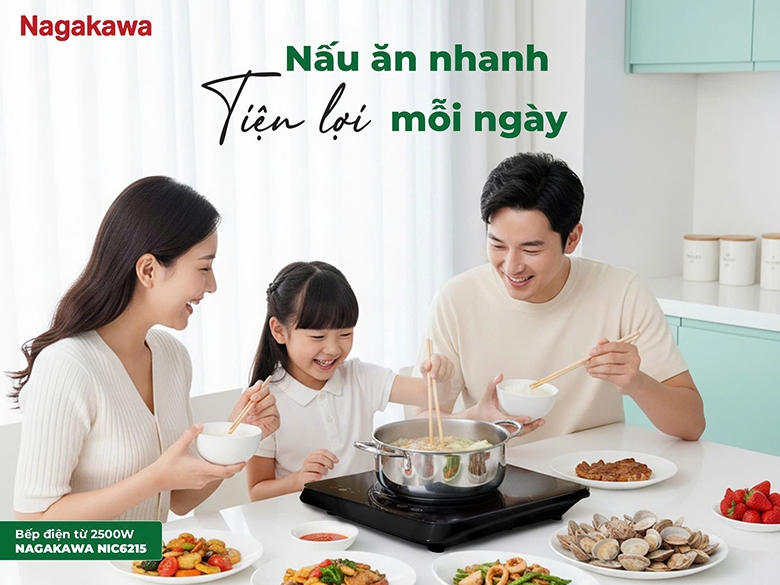 Nấu ăn nhanh, gọn nhẹ, dễ dàng vệ sinh, an toàn cho người sử dụng, hiệu suất sử dụng cao, giá thành rẻ,… quá nhiều ưu điểm trên chiếc bếp từ đơn Nagakawa NIC6215 khiến người dùng tin tưởng, lựa chọn.