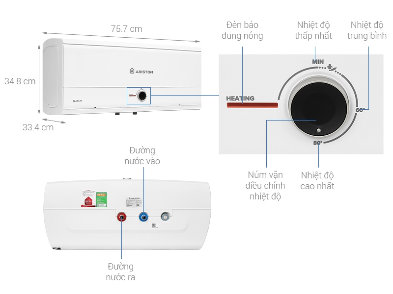 Thông số kỹ thuật Máy nước nóng gián tiếp Ariston 30 lít SLIM3 30 R AG+ VN