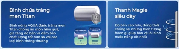 Để đảm bảo máy luôn hoạt động ổn định và bền bỉ, bình chứa bên trong được phủ đến 3 lớp men Titan cao cấp. Lớp bảo vệ này có khả năng chống gỉ sét và ăn mòn cực kỳ hiệu quả. Hơn nữa, công nghệ tráng men Titan còn hạn chế tối đa sự hình thành cặn bẩn. Tích cực góp phần nâng cao chất lượng nguồn nước và bảo vệ sức khỏe cho cả gia đình.![]()