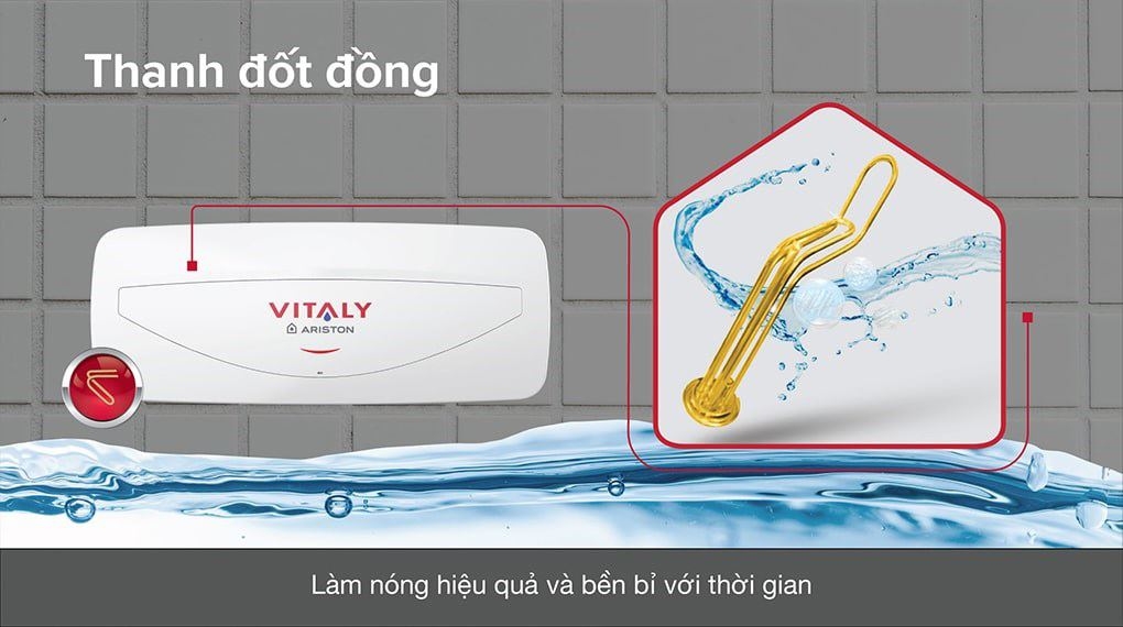 Sử dụng thanh đốt 100% đồng thay thế các loại thanh đốt làm từ Inox và thép không gỉ ở các bình nóng lạnh thông thường, giúp bình nóng lạnh mau chóng làm nóng nguồn nước, không lo bám cặn và sử dụng bền lâu.![]()