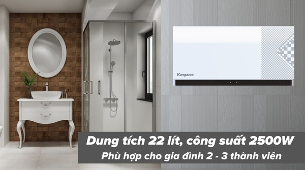 Máy nước nóng Kangaroo, có hệ thống làm nóng gián tiếp với bình chứa 22 lít, công suất 2500W đáp ứng tốt nhu cầu sử dụng nước nóng cho những gia đình có từ 2 - 3 người. ![]()
