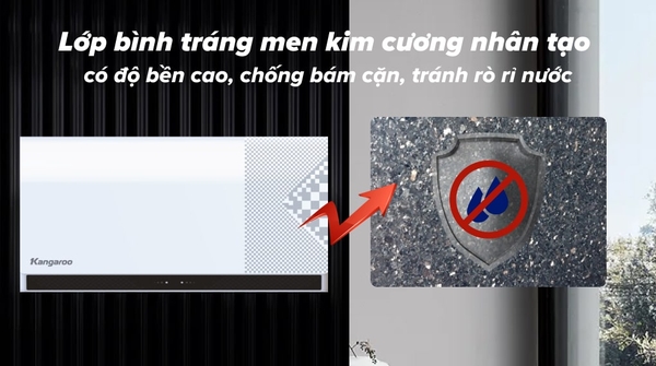 Nhà sản xuất đã tráng một lớp men kim cương nhân tạo bên trong bình, giúp loại bỏ tình trạng rò rỉ nước và nâng cao độ bền của sản phẩm. Đồng thời, lớp men này sẽ góp phần chống bám cặn, kháng khuẩn cho nguồn nước nóng luôn được sạch và an toàn cho làn da của bạn.![]()