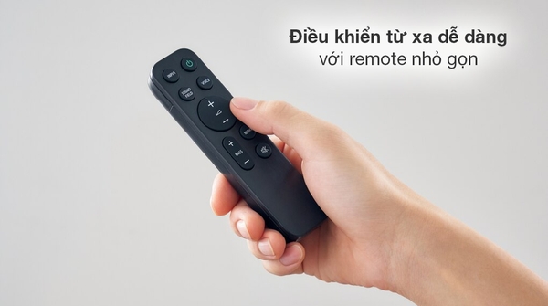 - Remote thiết kế cầm nắm vừa tay, các phím bấm có ký hiệu đơn giản, trực quan, dễ thao tác với các nút chuyên dụng để chỉnh các giá trị thiết lập âm lượng, âm thanh.