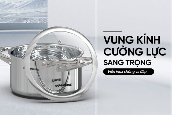 * Vung nồi Sunhouse SHG808 sử dụng kính cường lực và viền inox bền đẹp, hạn chế được móp méo khi va đập. Ngoài ra, chất liệu kính trong suốt giúp người dùng dễ dàng hơn trong việc quan sát và xử lý các tình huống nấu ăn.![]()