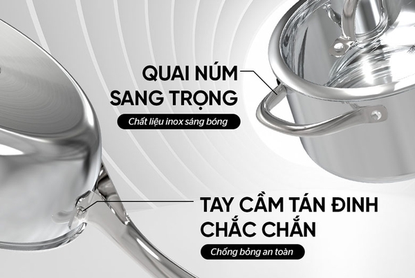 - Inox 304: là lớp trong cùng và tiếp xúc trực tiếp với thực phẩm. Đây là vật liệu đã được kiểm nghiệm tính an toàn, dù đun nấu ở nhiệt độ cao cũng không sinh ra chất độc hại, giúp bạn hoàn toàn yên tâm khi chế biến những bữa ăn của gia đình.