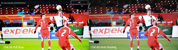 Khi bật chế độ bóng đá trên tivi Samsung: + Hình ảnh trận đấu bóng sẽ trở nên sinh động và đẹp mắt hơn. + Âm thanh sẽ được tăng cường, mang đến chất lượng âm thanh rõ ràng, sôi động. + Dễ dàng theo dõi các chuyển động nhanh trong thể thao với hình ảnh mượt mà hơn. |