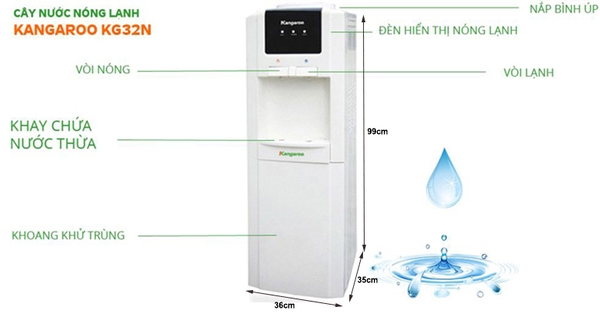 Với thiết kế thông minh, tính năng vượt trội và khả năng tiết kiệm điện năng, sản phẩm không chỉ mang lại sự tiện lợi mà còn đảm bảo chất lượng nước uống an toàn cho sức khỏe. Cây nước nóng lạnh Kangaroo KG32N thực sự là lựa chọn đáng tin cậy cho mọi không gian sử dụng, từ gia đình đến văn phòng, trường học hay bệnh viện.