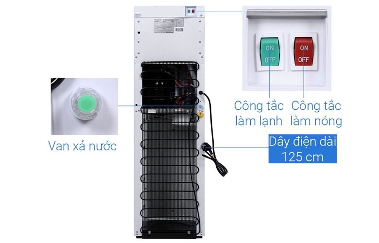 Đèn báo nóng lạnh và đèn báo hết nước giúp người dùng dễ theo dõi tình trạng nước trong bình chứa khi sử dụng![]()