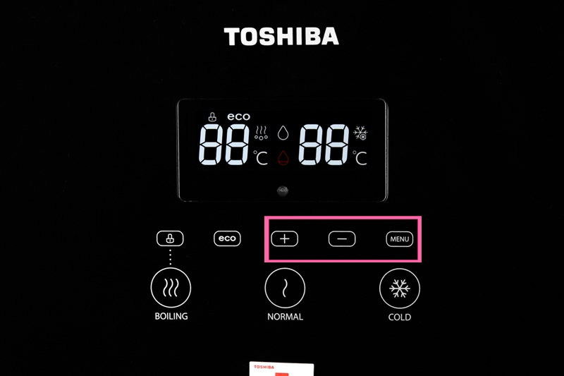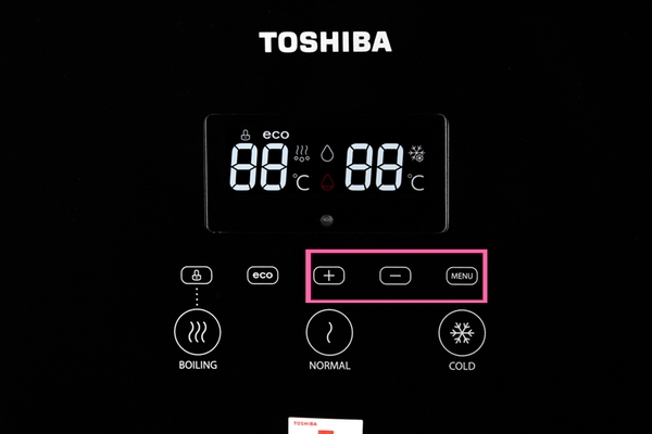 Bảng điều khiển nút nhấn điện tử với 3 chế độ cấp nước: nước thông thường, nước nóng và lạnh với nhiệt độ nước nóng đạt 85 - 95°C và nhiệt độ nước lạnh 5 - 10°C (theo điều kiện tiêu chuẩn)