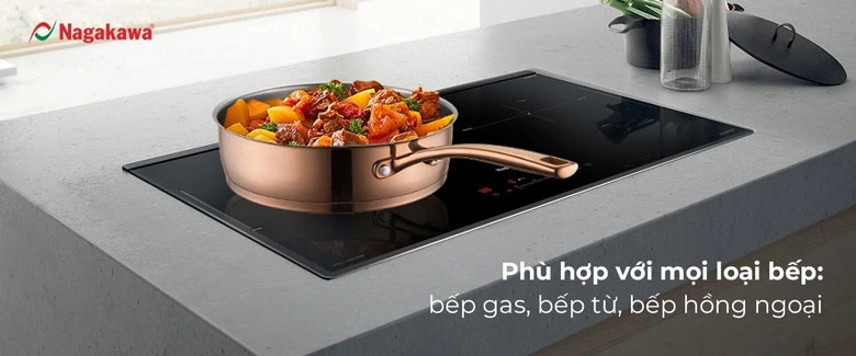 - Lớp ngoài cùng: inox 430. Đây là một trong những vật liệu có hiệu suất bắt từ cực cao, 98%. Nhờ vậy, chảo inox Nagakawa NAG1358-24P có thể sử dụng trên mọi loại bếp, kể cả bếp từ.![]()