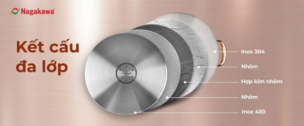 Trải nghiệm nấu ăn chuyên nghiệp và hoàn hảo của chảo inox Nagakawa NAG1358-24P phần lớn đến từ sự sắp xếp thông minh của kết cấu đáy đa lớp.![]()