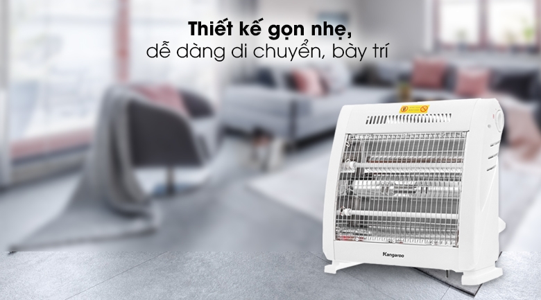 Quạt sưởi halogen Kangaroo KG1016C nhỏ gọn nhưng đẹp mắt, làm ấm hiệu quả, tiết kiệm điện, giá phải chăng dễ tiêu dùng, gia dụng hữu ích cho mùa lạnh.