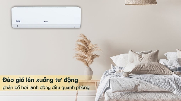 - Cánh đảo gió tự động hướng lên – xuống, giúp điều hướng luồng gió mát hoặc ấm đều khắp căn phòng nhỏ.![]()