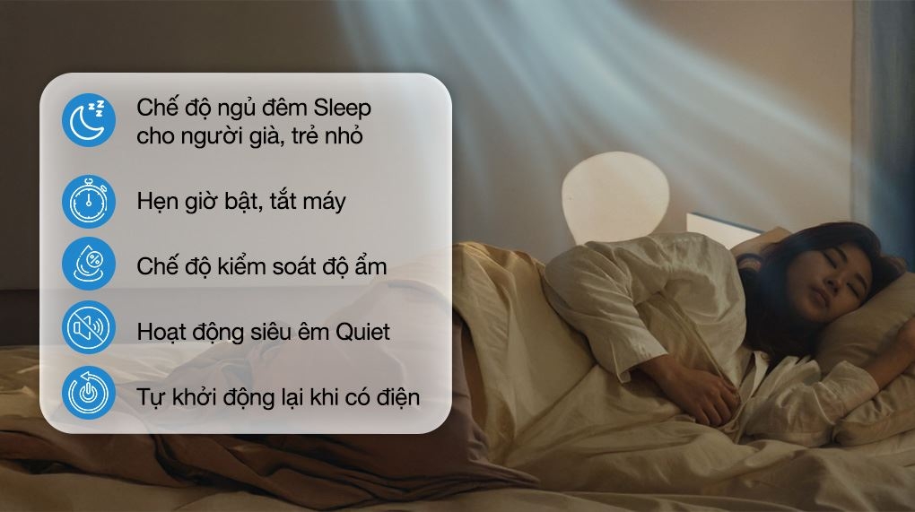 Bên cạnh đó, cảm biến bụi và mùi kết hợp đèn báo chất lượng không khí giúp bạn dễ dàng theo dõi môi trường phòng theo thời gian thực. Khi phát hiện dấu hiệu ô nhiễm, hệ thống sẽ tự động kích hoạt chế độ lọc để duy trì bầu không khí sạch thoáng, mang lại sự yên tâm trong quá trình sử dụng.![]()