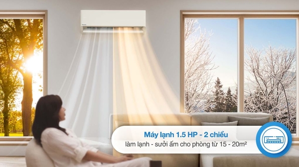 Ngoài ra, công suất sưởi ấm 12.600 BTU mang lại sự ấm áp trong những ngày lạnh, phù hợp cho khu vực có khí hậu hai mùa rõ rệt.