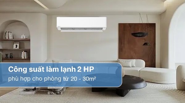 - Công suất làm lạnh 18.000BTU, công suất sưởi ấm 20.500 BTU phù hợp sử dụng trong những gian phòng từ 20 - 30m² (từ 60 đến 80m³).