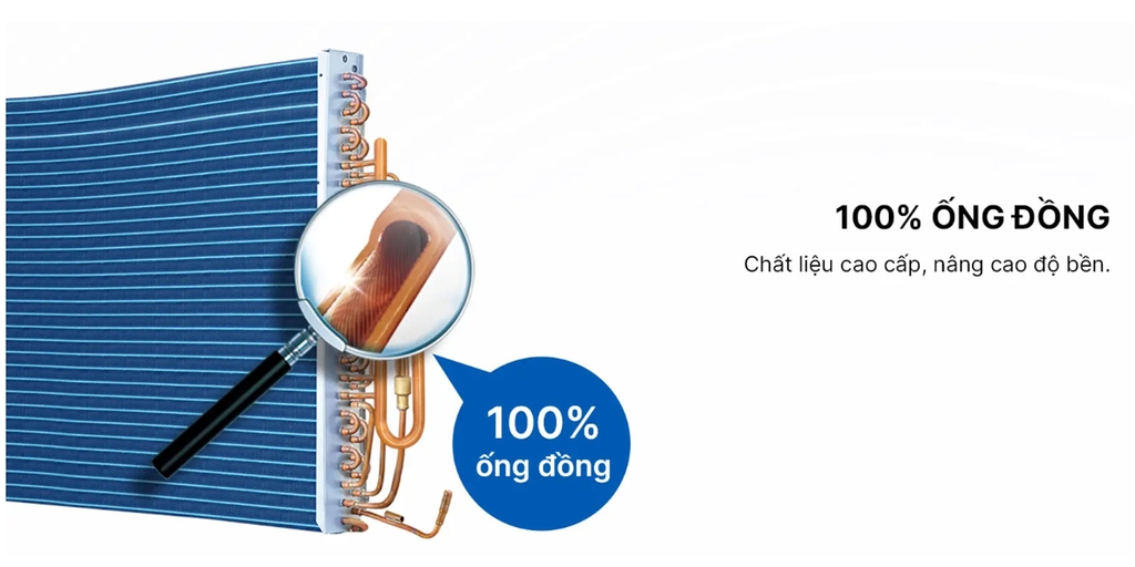 AQUA AQA-H13PH sử dụng 100% ống đồng, giúp tăng khả năng dẫn nhiệt, nâng cao hiệu quả làm lạnh/sưởi ấm và kéo dài tuổi thọ máy. Đây là một trong những yếu tố quan trọng giúp điều hòa hoạt động bền bỉ theo thời gian.![]()