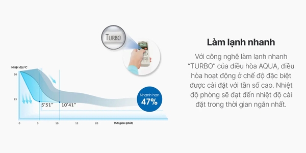 Chế độ Turbo – Làm lạnh/sưởi ấm siêu tốc AQA-H13PH được trang bị chế độ Turbo mạnh mẽ, giúp tăng tốc độ hoạt động của máy nén, nhanh chóng đạt nhiệt độ cài đặt chỉ trong thời gian ngắn. Nhờ đó, bạn có thể tận hưởng bầu không khí mát mẻ hoặc ấm áp ngay lập tức mà không cần chờ đợi.![]()