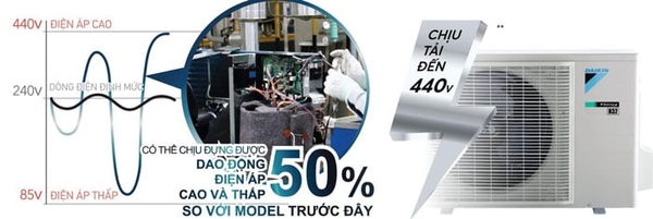 Điều hòa Daikin 2 chiều FTHF35XVMV được trang bị một mạch điện tử có độ bền cao, có khả năng chịu đựng được điện áp lên đến 440V, nhờ vậy mà điều hòa có thể hoạt động trên một phạm vi rộng điện áp ở những khu vực có nguồn điện không ổn định đem đến sự an tâm cho người dùng.![]()