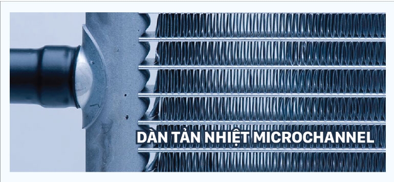 Dàn trao đổi nhiệt vi ống (microchannel) được cấu tạo bởi những cánh tản nhiệt bằng hợp kim nhôm kết nối với các vi ống song song, giúp tăng khả năng truyền nhiệt và giảm độ ăn mòn so với cánh tản nhiệt thông thường.
