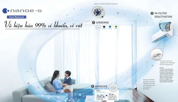 Panasonic đã tích hợp công nghệ Nanoe-G vào điều hòa CU/CS-RU12CKH-8D, giúp cải thiện chất lượng không khí trong phòng. Công nghệ này tạo ra các phân tử nước siêu nhỏ tích điện, có khả năng khử mùi, diệt vi khuẩn, nấm mốc và các tác nhân gây dị ứng. Điều đặc biệt là bộ phát Nanoe-G vẫn hoạt động ngay cả khi máy tắt, giúp làm sạch không khí ngay cả khi bạn không có mặt ở nhà.![]()