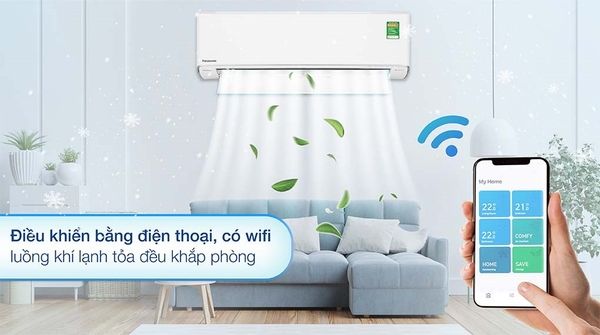 - Điều khiển bằng điện thoại, có wifi: Máy lạnh Panasonic Inverter 1.5 HP có khả năng kết nối wifi và người dùng có thể điều khiển máy lạnh từ xa thông qua ứng dụng được cài đặt trên điện thoại mọi lúc mọi nơi. Nhờ đó, người dùng có thể theo dõi điện năng tiêu thụ, nhanh chóng phát hiện sự cố,… và điều khiển chức năng máy lạnh dễ dàng.