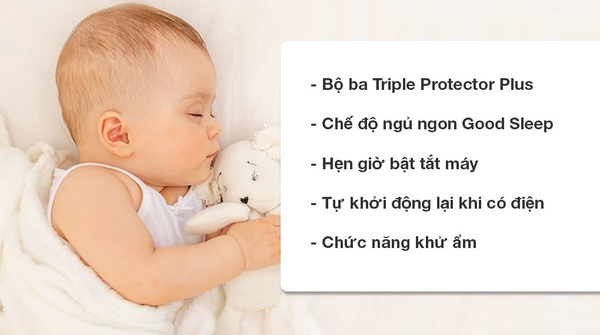 - Tự khởi động lại khi có điện: gặp sự cố cúp điện bất ngờ, khi có điện, máy sẽ tiếp tục chạy theo các cài đặt trước đó mà không cần thao tác trở lại.