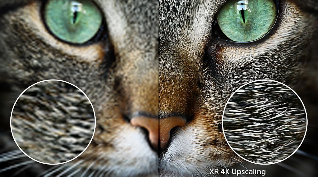 - Bên cạnh đó, để đảm bảo mọi thứ bạn xem đều có chất lượng 4K sắc nét, hãng tích hợp công nghệ XR 4K Upscaling tái tạo được kết cấu, các vùng ảnh bị mất, nâng cấp khung hình lên độ phân giải 4K đối với bất cứ nguồn nội dung nào. ![]()