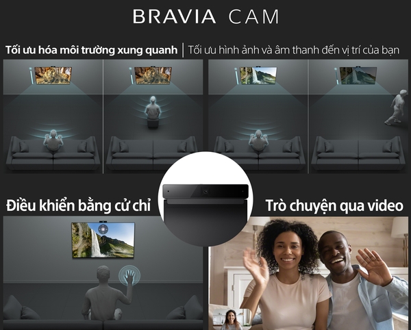 - Mặt khác, Google Tivi Sony XR-65X95L còn được hỗ trợ một tiện ích thông minh khác là Bravia CAM (cần mua thêm camera để sử dụng). Phần mềm cho phép bạn thực hiện các cuộc gọi video trực tuyến chân thực, có tính năng điều khiển bằng cử chỉ cho người dùng điều chỉnh âm lượng, chuyển kênh dễ dàng như một cái búng tay. Tính năng cảnh báo khoảng cách cung cấp khoảng cách xem được đề xuất cho trẻ để bạn tiện cài đặt, ngăn chặn trẻ xem tivi quá gần, gây hại cho mắt. ![]()