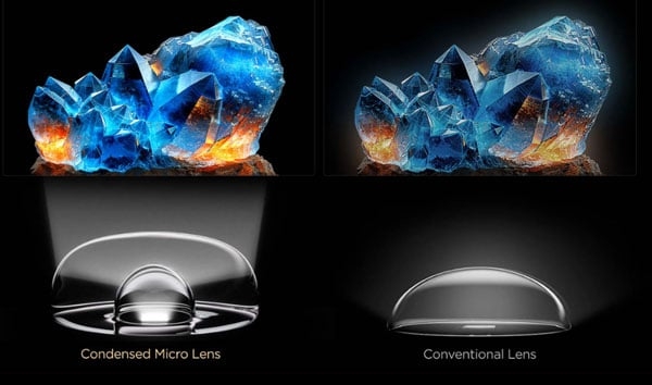 Ống kính hội tụ siêu nhỏ: Đây là công nghệ ống kính siêu nhỏ ngưng tụ do TCL tự phát triển với khả năng kiểm soát chính xác hướng ánh sáng thông qua thiết kế làm mờ cầu vòm đồng thời tính toán loại ánh sáng ưu tú, độ cong vàng với khả năng cho phép ánh sáng tập trung chính xác hơn để cải thiện đáng kể tính đồng nhất của đèn nền và kiểm soát quầng sáng để chi tiết màn hình rõ nét hơn.