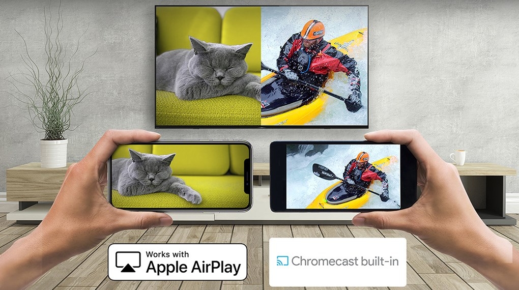 - Trình chiếu nội dung từ điện thoại lên tivi thông qua Chromecast, AirPlay 2. ![]()