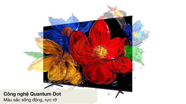 - Tivi QLED sử dụng công nghệ Quantum Dot mở rộng dải màu hiển thị, hình ảnh sống động, tươi tắn và chuẩn màu điện ảnh, phù hợp cả khi xem phim hay chơi game.
