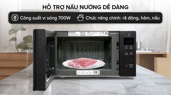 - Lò vi sóng hoạt động ổn định với công suất vi sóng tối đa 700W. Sản phẩm có 10 mức công suất nên người dùng có thể tùy chỉnh linh hoạt tùy theo nhu cầu sử dụng.